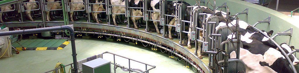 Image: Mycoplasma bovis is a highly contagious disease affecting dairy cows worldwide. Rotary Milking Parlor by Gunnar Richter published under a BY-SA 3.0 attribution.